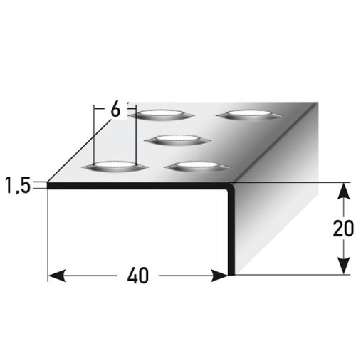 9.84 ft Stair nosing profile / step nosing edge (0.79 x 1.57'') aluminium, anodised, drilled, metal, color: high-grade steel