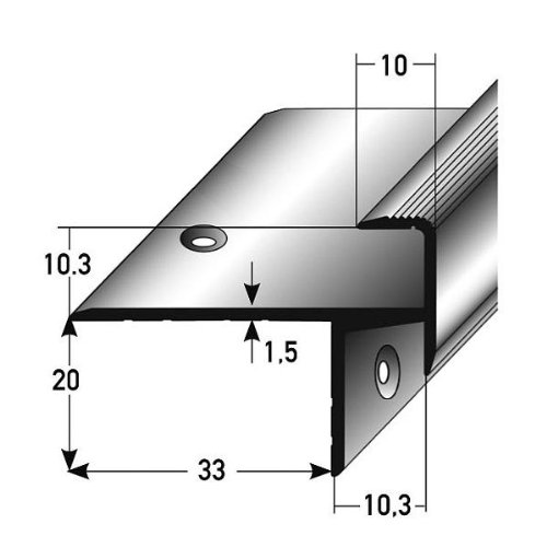 Cheap Place To Buy Laminate-parquet-Stair nosing / angle profile, height 10,3 mm (0.40"), 33 mm (1.30") width, Anodised Aluminium, drilled Online