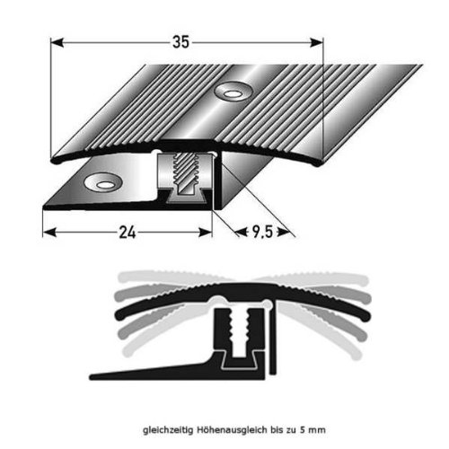 Top Quality Transition Profile, Threshold Strip Laminate "Vernon 7-17 mm, height: 35 mm, 3-Piece, anodised Aluminium, drilled Flex - Hot Products 2018